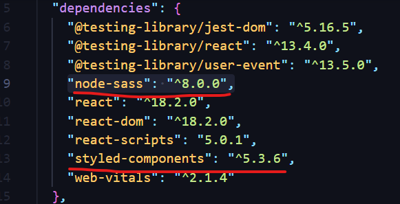 설치가 잘되었는지 확인하는 방법은 프로젝트 폴더의 package.json에 들어가면 dependencies에 들어가 있는 걸 볼 수 있다.